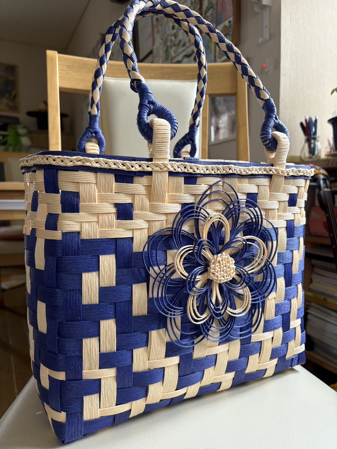 バッグ クラフトテープ クラフト 2025/9/3 おはようございます☀ 今日も朝から暑い(猛暑)(猛暑)(猛暑) お盆中にクラフトテープで かごバック作りました🤗 師匠に教えて頂いた 《網代編み》楽しいです。 師匠❗️ ありがとうございます(ありがとう)(ありがとう)